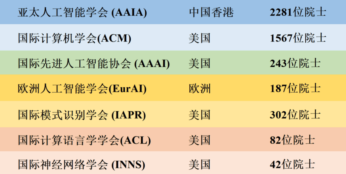 亚太人工智能学会(AAIA)成立于2021年,此中诺贝尔得从2人、ACM图灵得从3人、美国国度科学院院士29人、美国国度工程院院士78人、英国皇家工程院院士46人、英国皇家科学院院士33人、国度科学院院士18人、国度工程院院士18人、法国科学院院士11人、中国科学院院士23人、中国工程院院士24人、日本工程院院士33人、韩国国度工程院院士15人、韩国科学院院士25人、科学院院士9人、工程院院士11人、皇家科学院院士32人、工程院院士74人、荷兰皇家科学院院士14人、以及1516位IEEE会士、243位ACM会士、92位AAAI会士、143位IAPR会士、22位ACL会士、18位INNS会士及其他国际出名组织会士等。